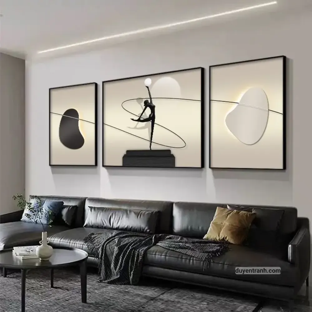 Bộ 3 tranh canvas trừu tượng – Trang trí phòng khách, phòng ngủ phong cách hiện đại