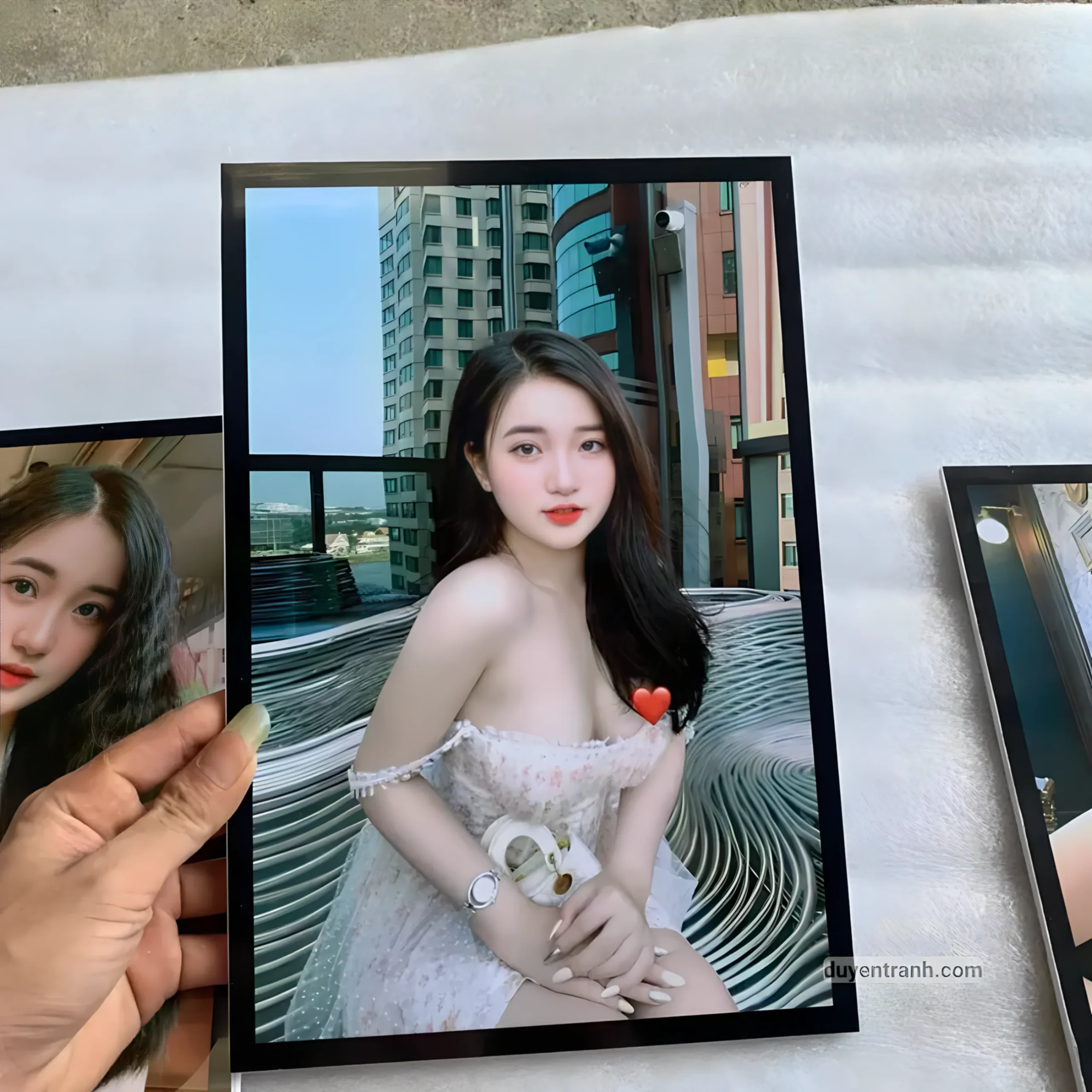 Bộ 3 ảnh formex tráng gương dán tường — in theo ảnh cá nhân của bạn. Gửi ảnh, Duyên Tranh in và giao tận nơi. Ảnh được in trên nền formex dày 5mm, phủ mica tráng gương bóng, có sẵn keo dán tường phía sau.