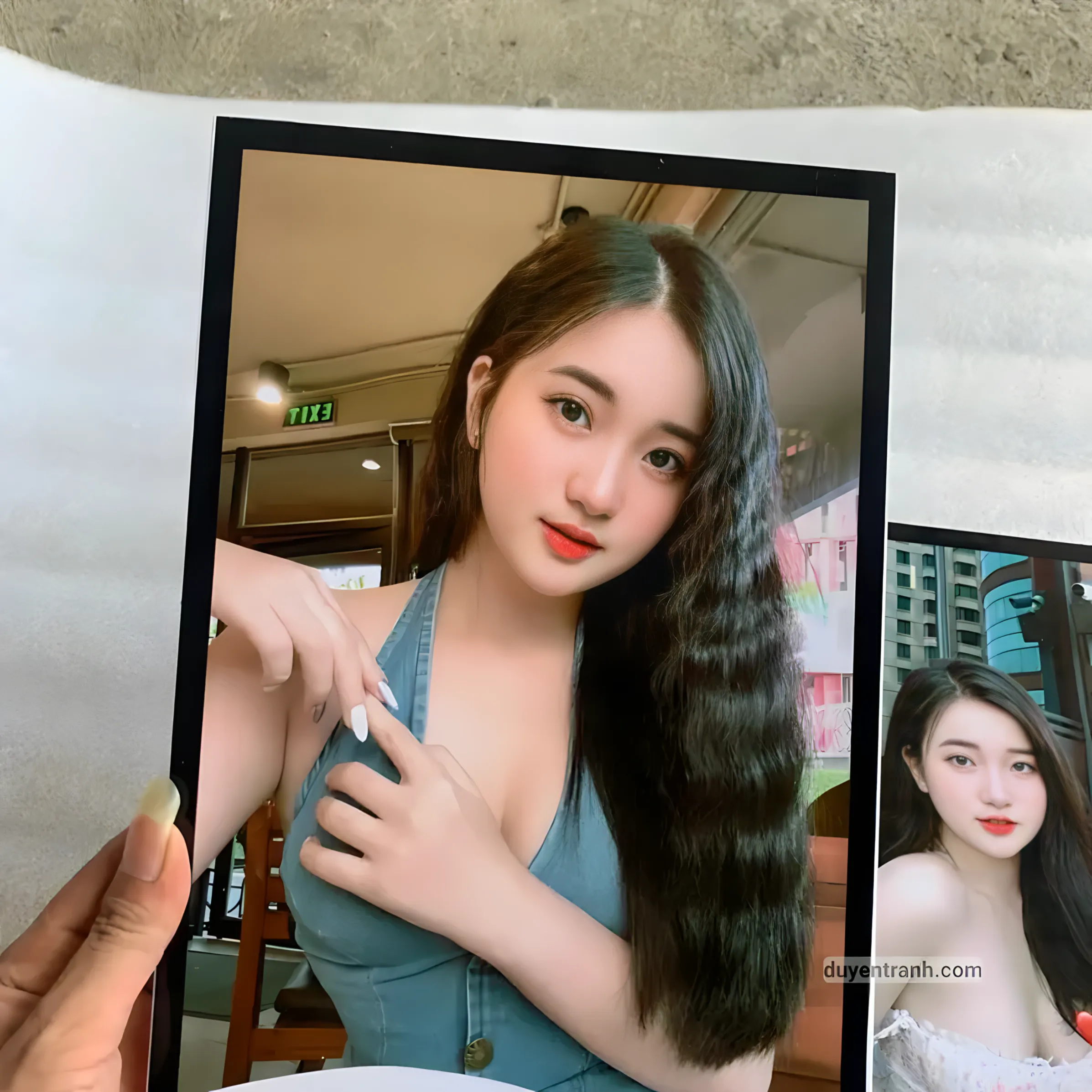 Chọn size (15×20 cm hoặc 20×30 cm), đặt hàng, sau đó gửi 3 file ảnh cho Duyên Tranh qua tin nhắn. Ảnh chụp từ điện thoại thông thường là đủ chất lượng để in. Chỉ cần ảnh nhìn rõ nét trên màn hình điện thoại, không bị mờ hay vỡ hạt khi phóng to.