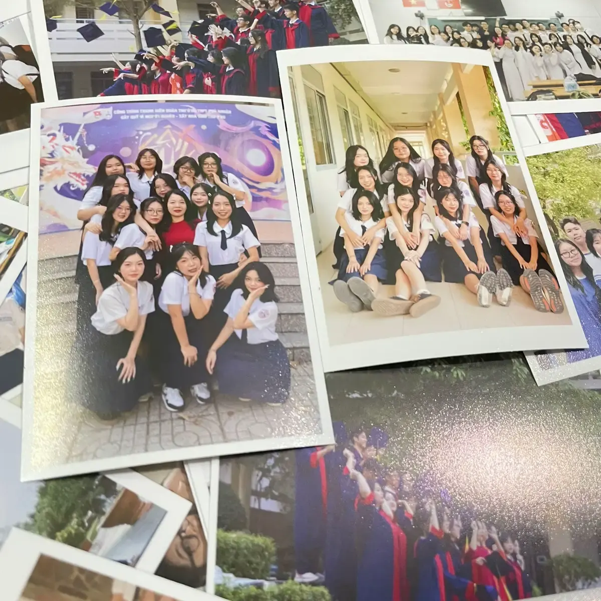 Kỷ yếu là những bức ảnh mà 10-20 năm sau nhìn lại vẫn thấy xúc động. Tại Duyên Tranh, ảnh kỷ yếu được in bằng máy LAB Noritsu QSS trên giấy Kodak Royal chính hãng — sắc nét, bền màu, chống ẩm, giữ được vẻ đẹp theo thời gian. Miễn phí chỉnh sửa, tăng nét ảnh trước khi in — quan trọng vì ảnh kỷ yếu chụp ngoài trời thường bị ngược sáng, mờ, cần chỉnh lại.