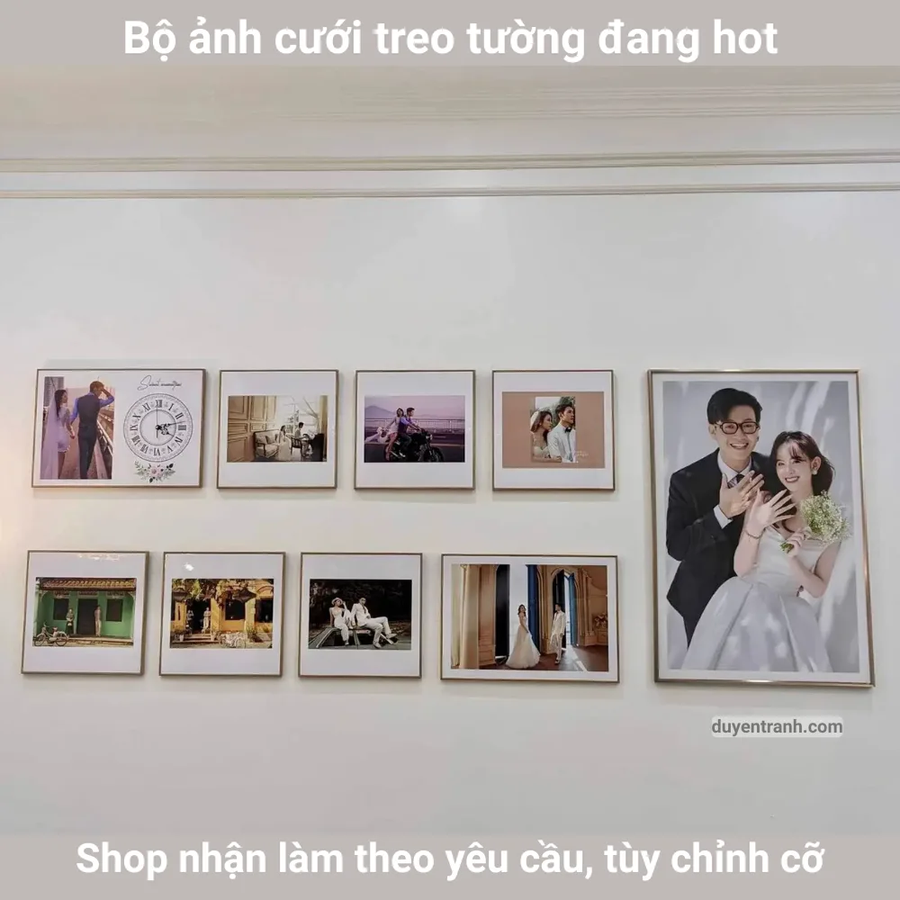Combo khung + in ảnh: thêm phí in ảnh theo chất liệu (ảnh giấy cán lụa 120K, ảnh gỗ lụa 210K, ảnh tráng gương cốt gỗ 255K — xem đầy đủ tại bảng giá in ảnh).