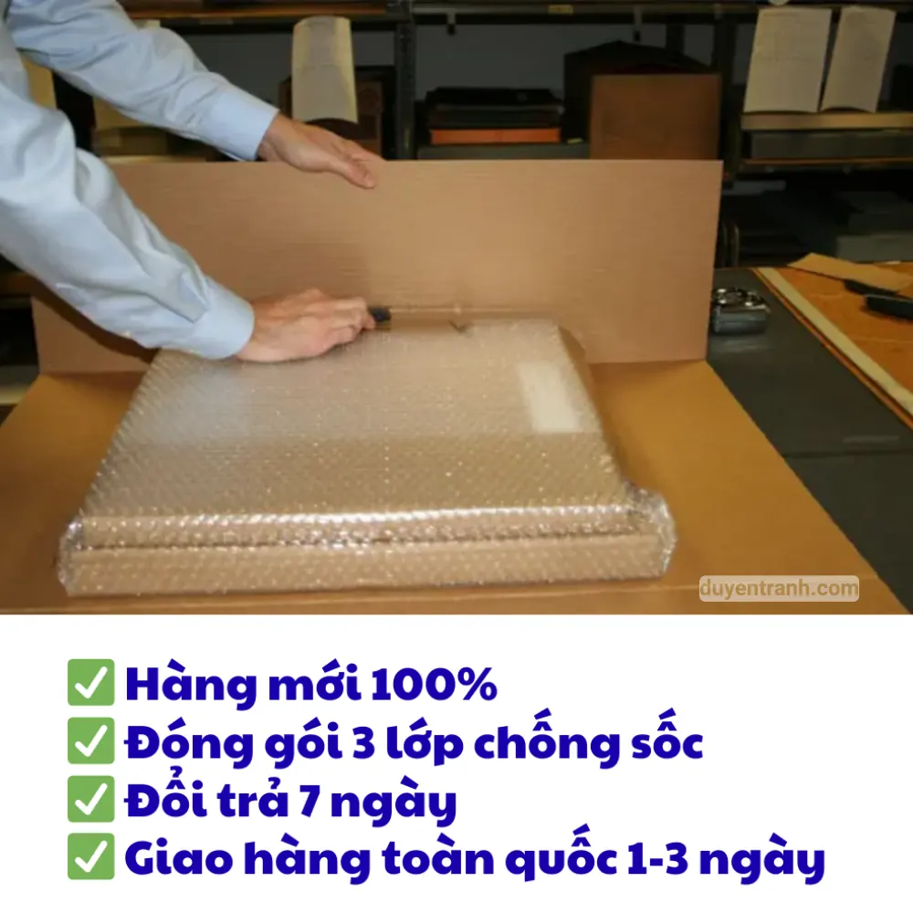 Đáp: Khung ảnh được đóng gói cẩn thận trong hộp carton + giấy gói quà. Mở ra tặng được ngay, không cần gói thêm.