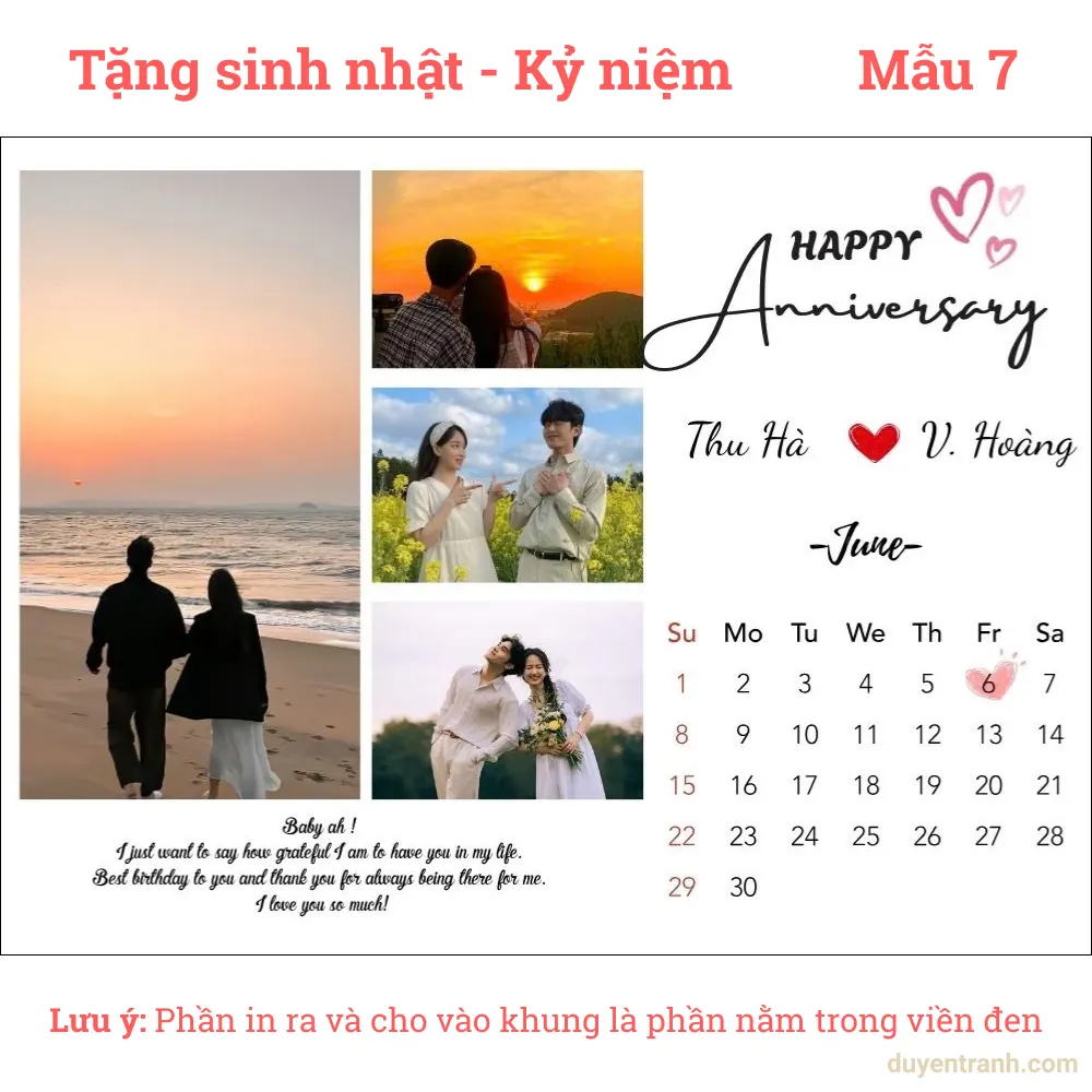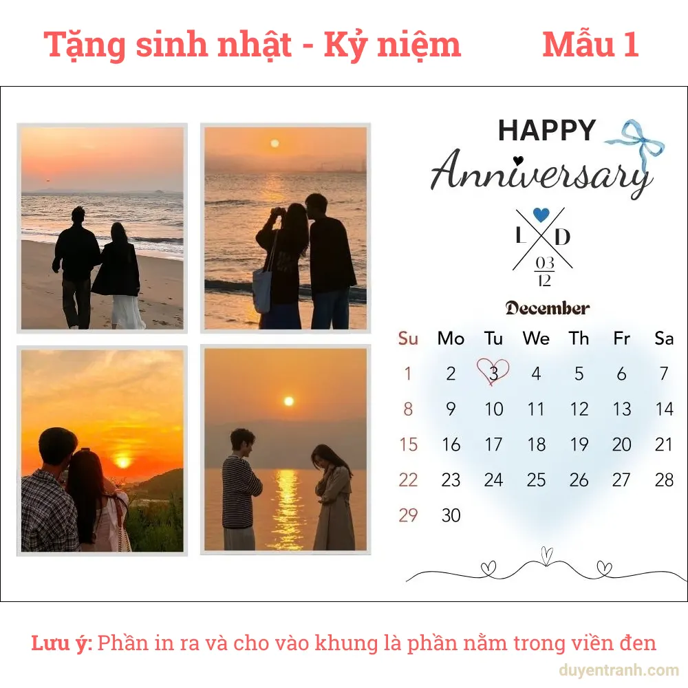Bạn đang tìm quà sinh nhật ý nghĩa cho người thân, bạn bè? Một bức ảnh kỷ niệm được in đẹp, đóng trong khung sang trọng, kèm gói quà tặng — đó là món quà khiến người nhận cảm động hơn bất kỳ món đồ vật chất nào. Tại Duyên Tranh, chỉ cần gửi ảnh qua Zalo — xưởng thiết kế miễn phí theo mẫu (thêm chữ chúc mừng, ngày tháng, tên), in ảnh và tăng nét miễn phí, đóng khung đẹp, gói quà sẵn sàng tặng.