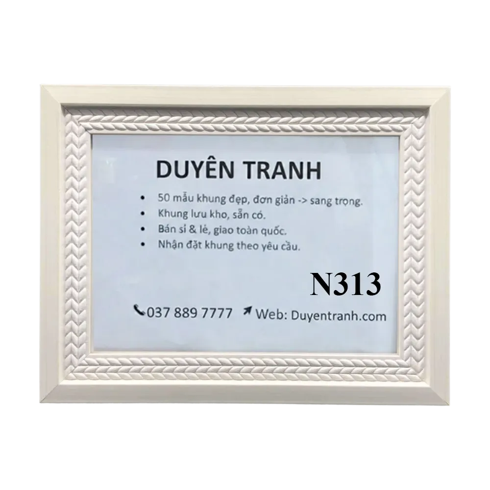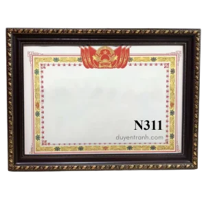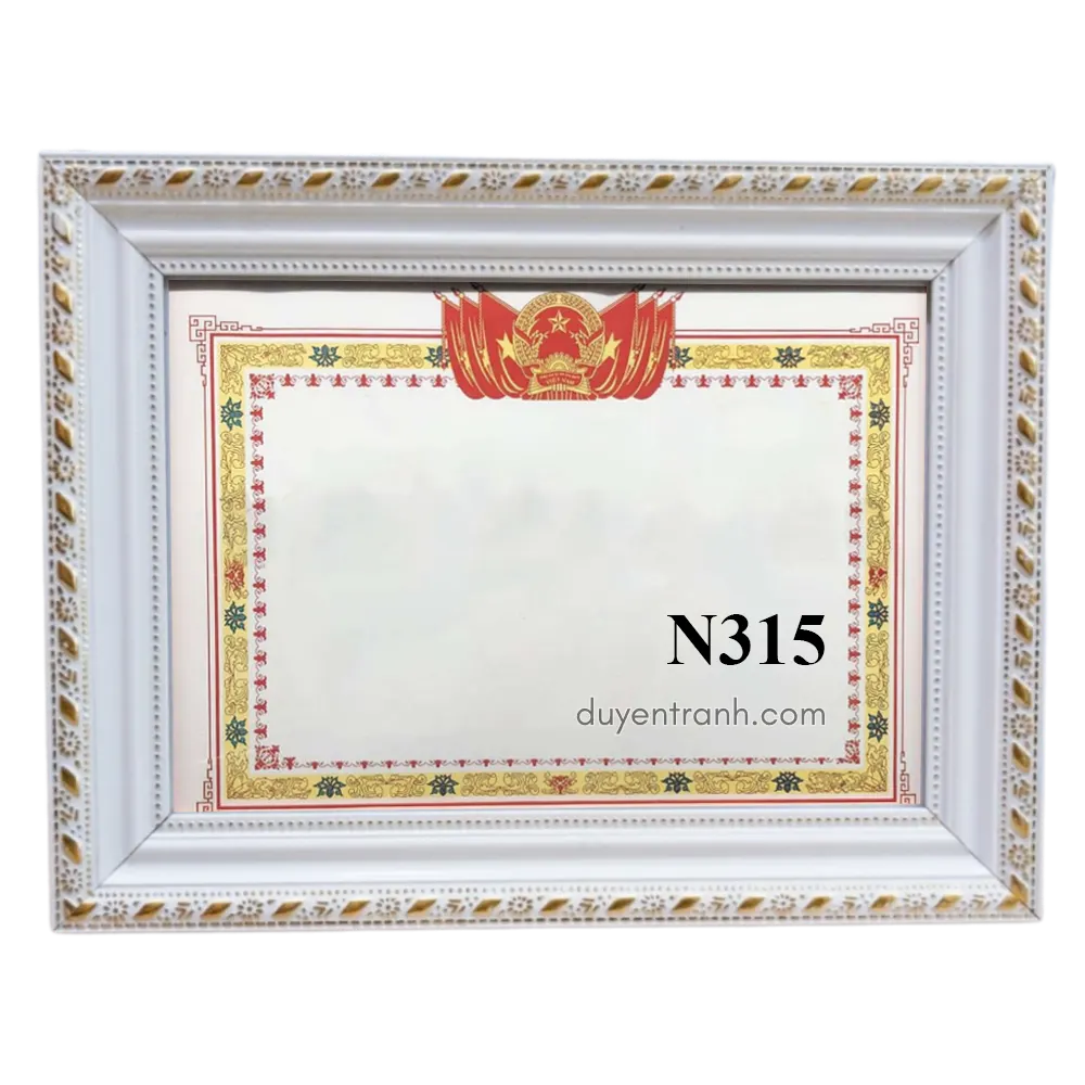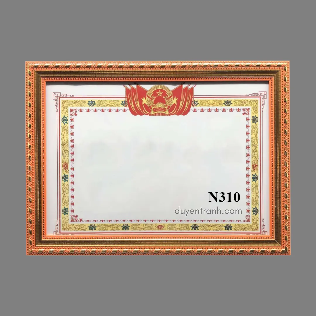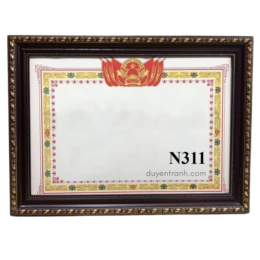 Cơ quan nhà nước, phòng truyền thống: chọn viền 4cm vàng (N401, N403) — dày dặn, trang trọng. Trường học, công ty treo số lượng nhiều: chọn viền 3cm trắng hoặc nâu (N308, N311, N312) — gọn, giá tốt. Phong cách hiện đại, văn phòng startup: chọn viền 3cm đen hoặc trắng trơn (N313, N315) — tối giản, không rối mắt.