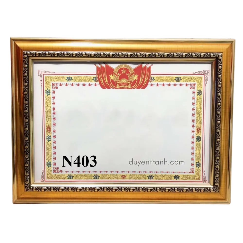 Khung bằng khen A3 (29.7 x 42 cm) tại Duyên Tranh — sản xuất trực tiếp tại xưởng Hà Nội nên giá thành thấp hơn thị trường 20-30%. Đây là kích thước phổ biến cho bằng khen cấp Bộ, bằng khen Chính phủ, bằng Tiến sĩ, giấy phép kinh doanh, hoặc các chứng nhận khổ lớn cần sự trang trọng.