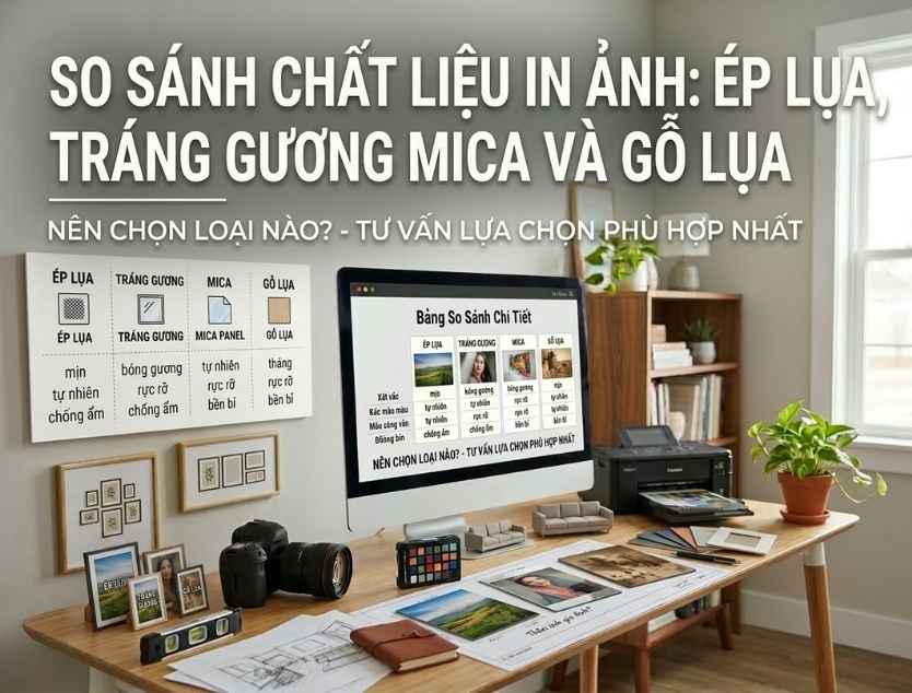 So sánh chất liệu in ảnh: Ép lụa, tráng gương Mica và gỗ lụa – Nên chọn loại nào?