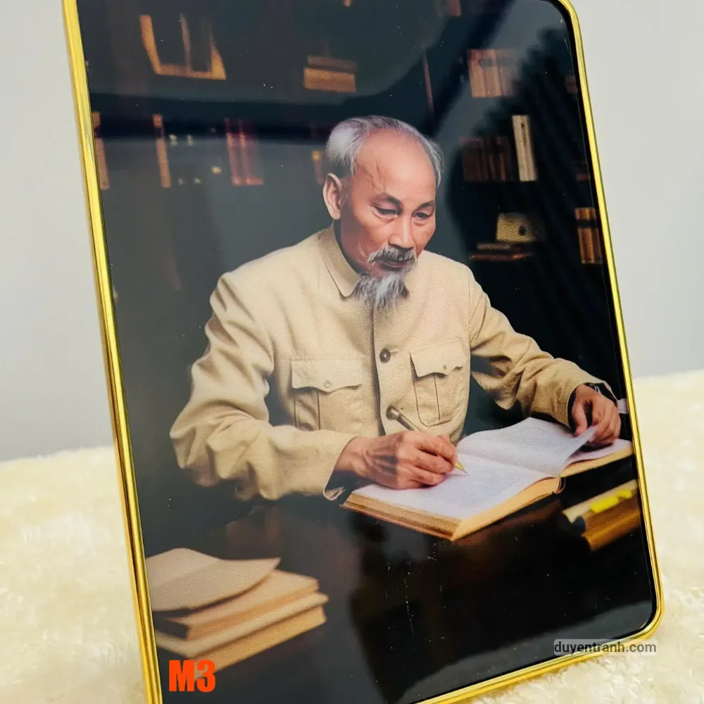 Tranh Bác Hồ tráng gương – Để bàn hoặc treo tường, bo viền sang trọng
