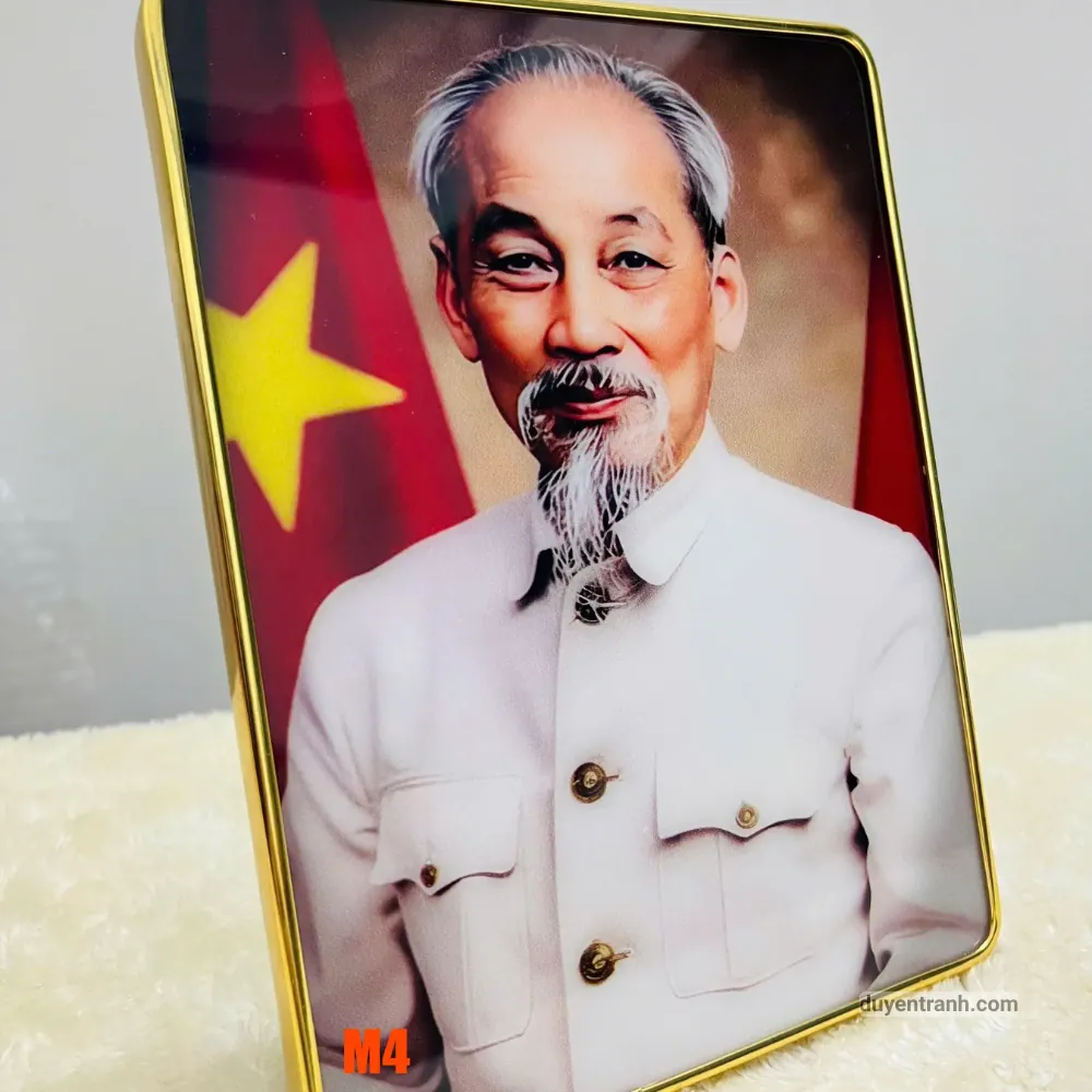 8 mẫu bao gồm: chân dung Bác Hồ (nhiều góc chụp khác nhau), Bác Hồ đọc báo, Bác Hồ với thiếu nhi, Bác Hồ làm việc, Bác Hồ và phong cảnh Việt Nam. Mỗi mẫu có phong cách riêng – từ trang trọng (phù hợp cơ quan, phòng họp) đến gần gũi (phù hợp trường học, phòng khách gia đình). Chọn mẫu ở phân loại “Mẫu” khi đặt hàng.